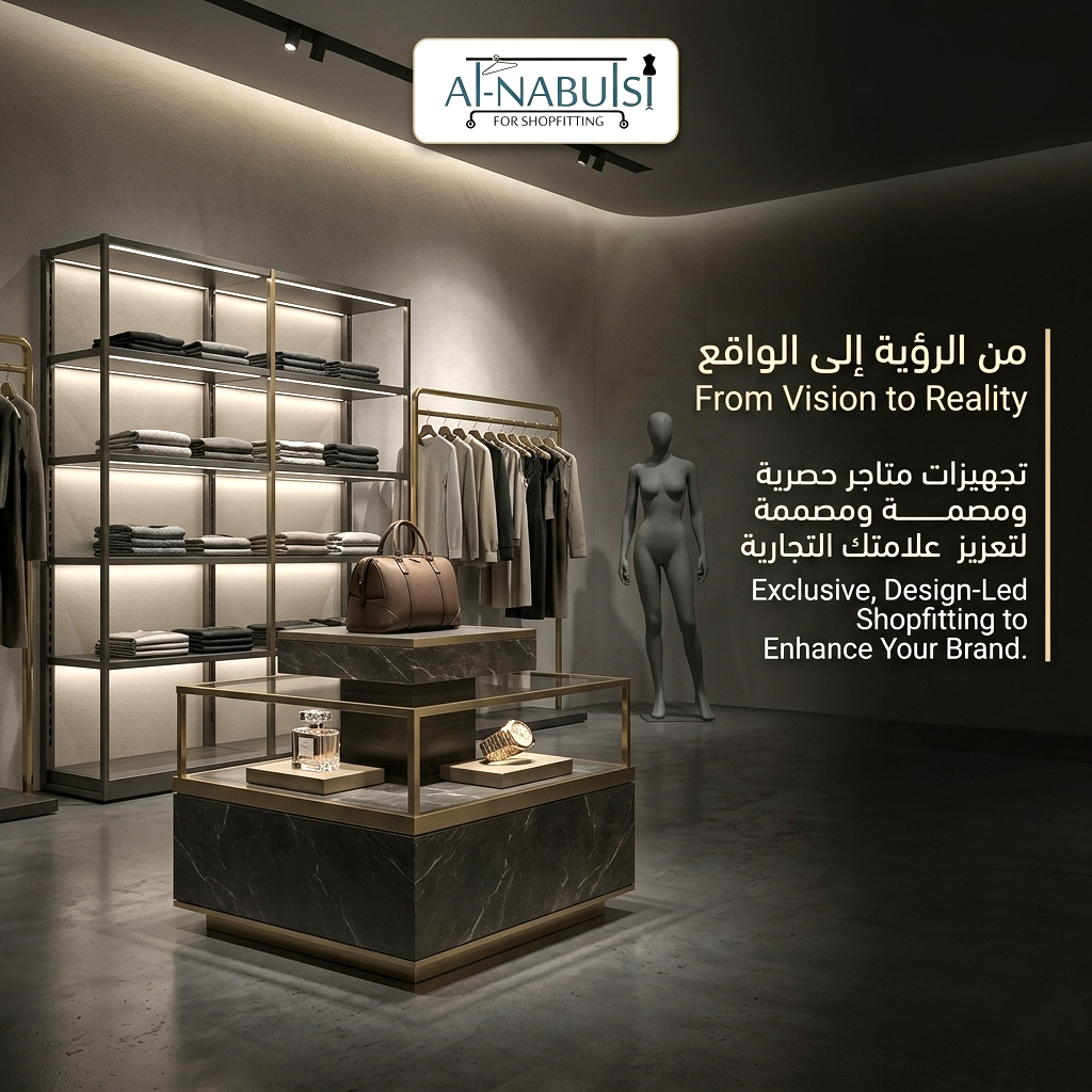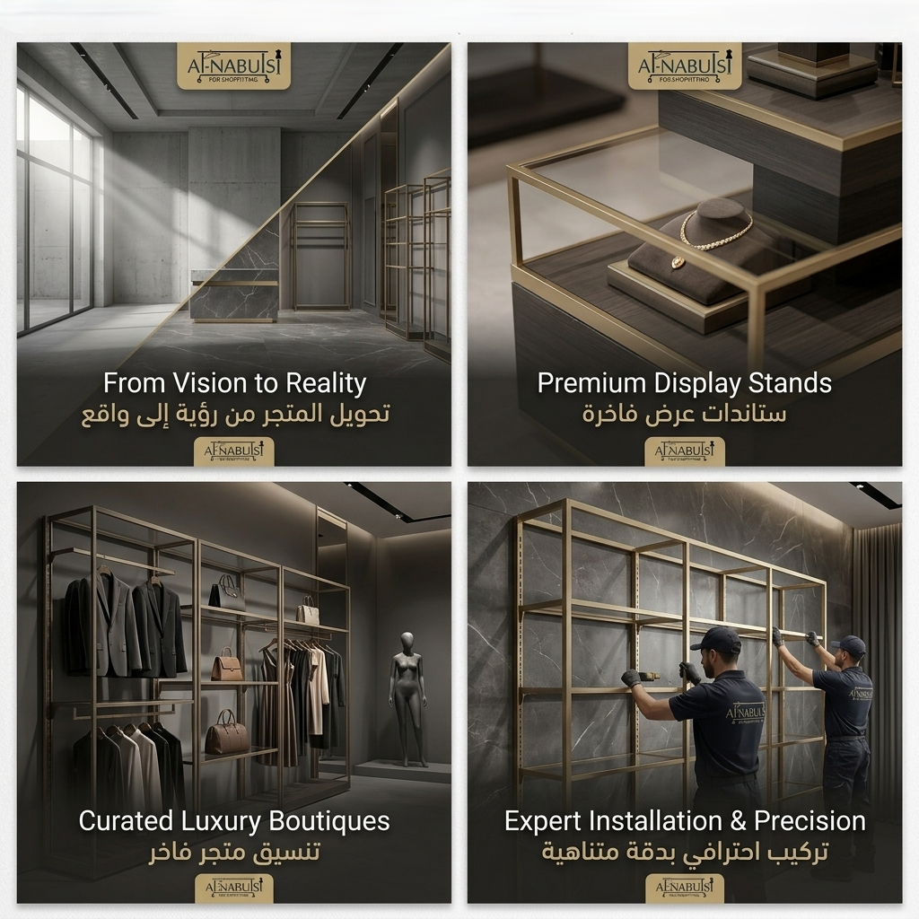 في النابلسي لتجهيز المحلات، نحن لا نصنع المساحات فقط — بل نبتكر بيئات عرض تعكس هوية علامتك التجارية وتزيد من مبيعاتك.